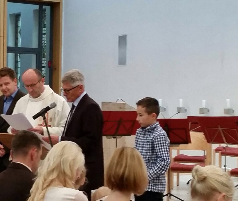 Mein Großer hatte sich bis dahin auch wieder erholt, und hat auch noch schnell ein paar Fürbitten vorgelesen. Das macht er echt gerne. Die Tauffeier war auch echt wunderschön. Nur meine Tochter äußerste sich etwas lauter, dass sie den Pfarrer scheisse findet 😳! Mit der Begründung, dass er nur die Lieder mitsingt, die ihm gefallen.
