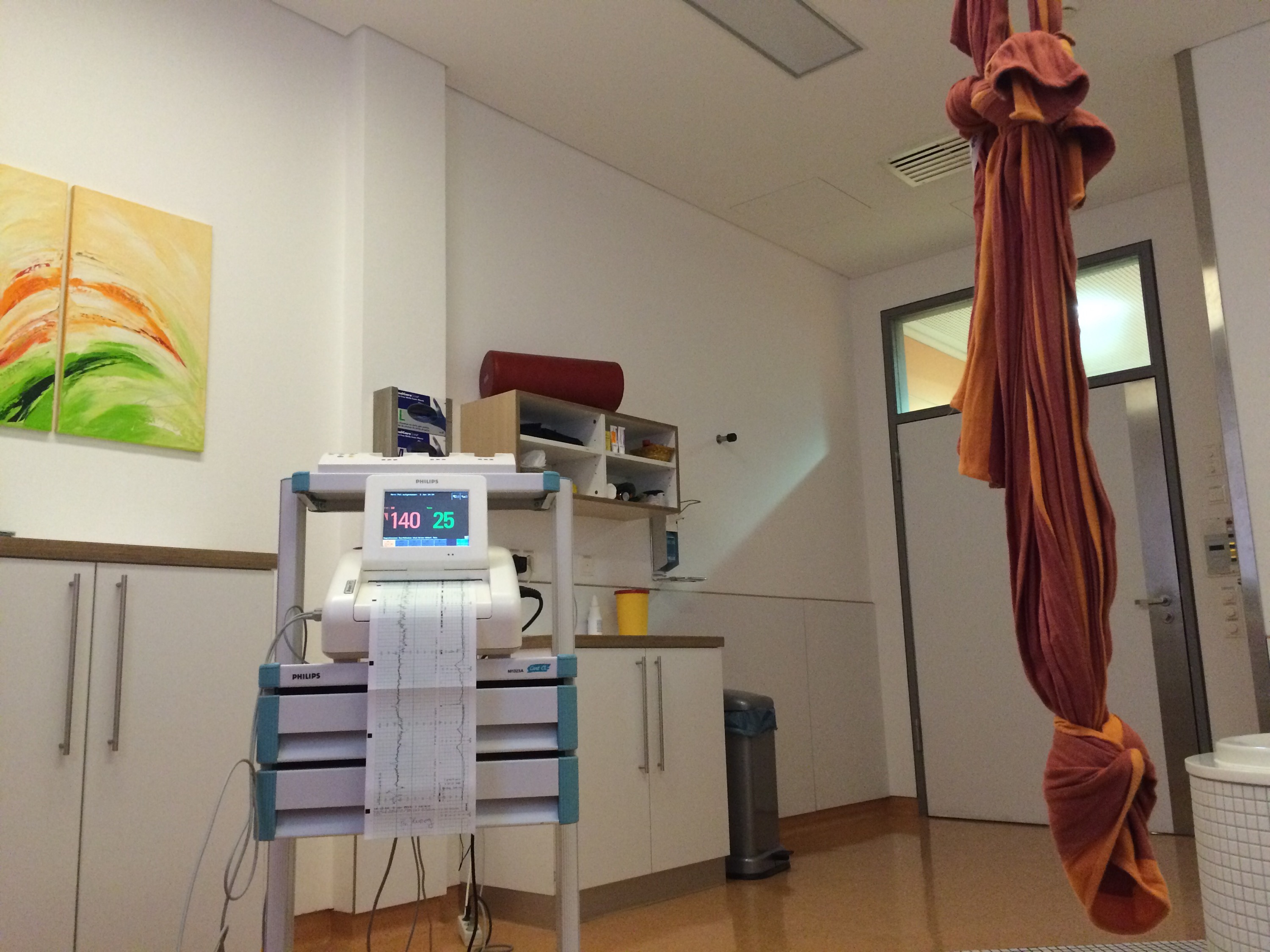 Ich durfte zum Mittagessen wieder in mein Zimmer und habe versucht ein wenig zu schlafen, da ich um kurz nach 14 Uhr wieder in den Kreissaal musste um nochmal das Gel zu bekommen. Meine Hoffnung war schon dahin, denn ich konnte mir beim besten Willen nicht vorstellen, dass sich bei mir noch überhaupt was tut.🙈 Ich musste wieder an das CTG und genau nach einer Stunde waren die Herztöne wieder etwas auffällig und ich durfte wieder noch eine weitere Stunde im Kreissaal verbringen. Zum Glück war immer nichts mit dem Babymädchen aber Wehen konnten wir auf dem Kilometerlangen Papier auch nicht erkennen. Der Befund war wie im Nobember schon. Muttermund weich /fingerdurchläßig – keine Überraschung! Die Hebamme schlug mir nach Bedarf noch einen Einlauf vor, den ich vorerst einmal ablehnte. Ich dachte mir ein Kaffee tut es auch😉.