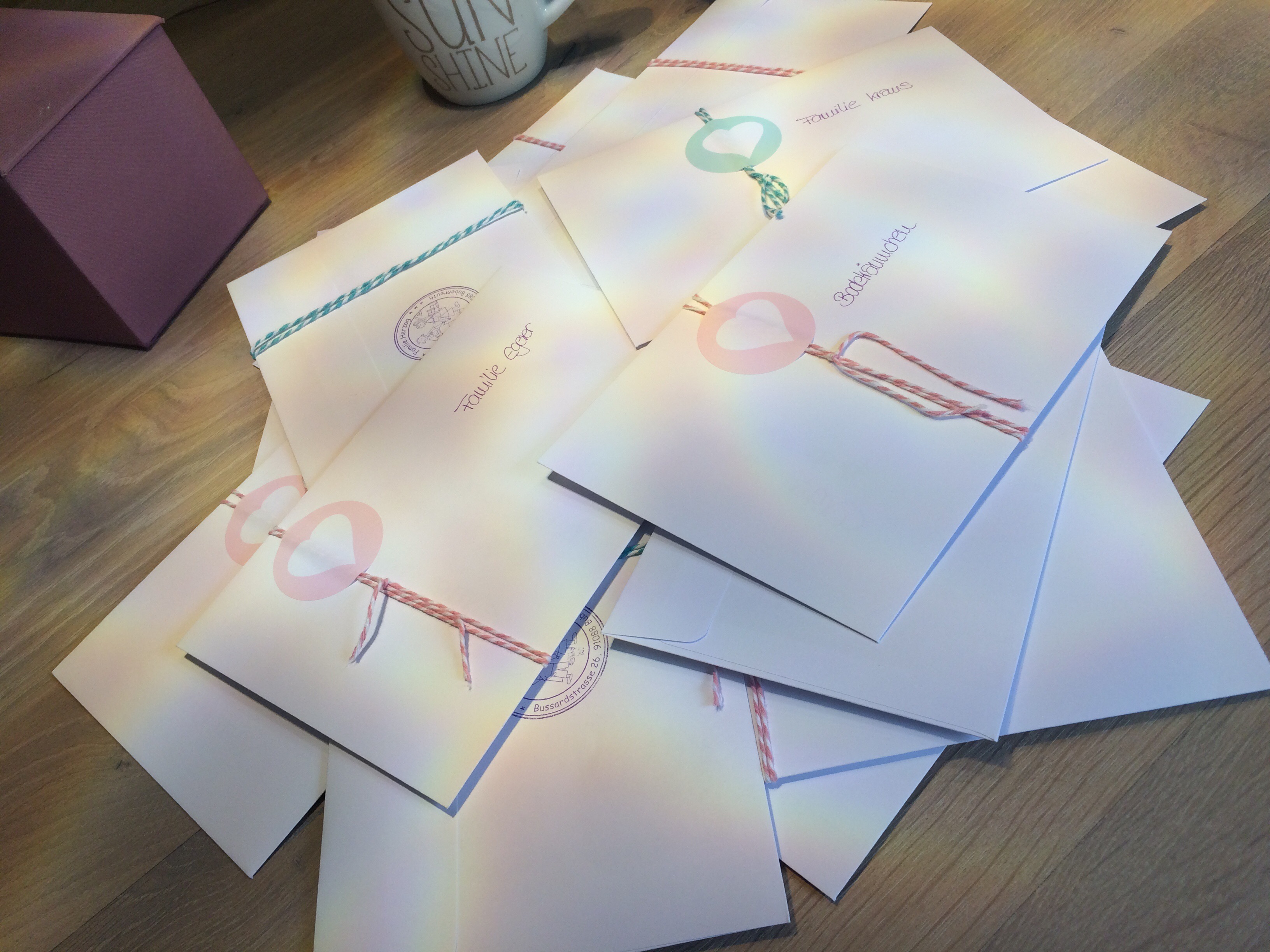 Nachdem wir unsere ersten Karten verteilt hatten,hätten wir nicht gedacht,dass noch so viele Glückwünsche folgen. Daraufhin mussten wir noch mal welche nachbestellen. Im Moment sind wir bei über 40 Dankeskarten.